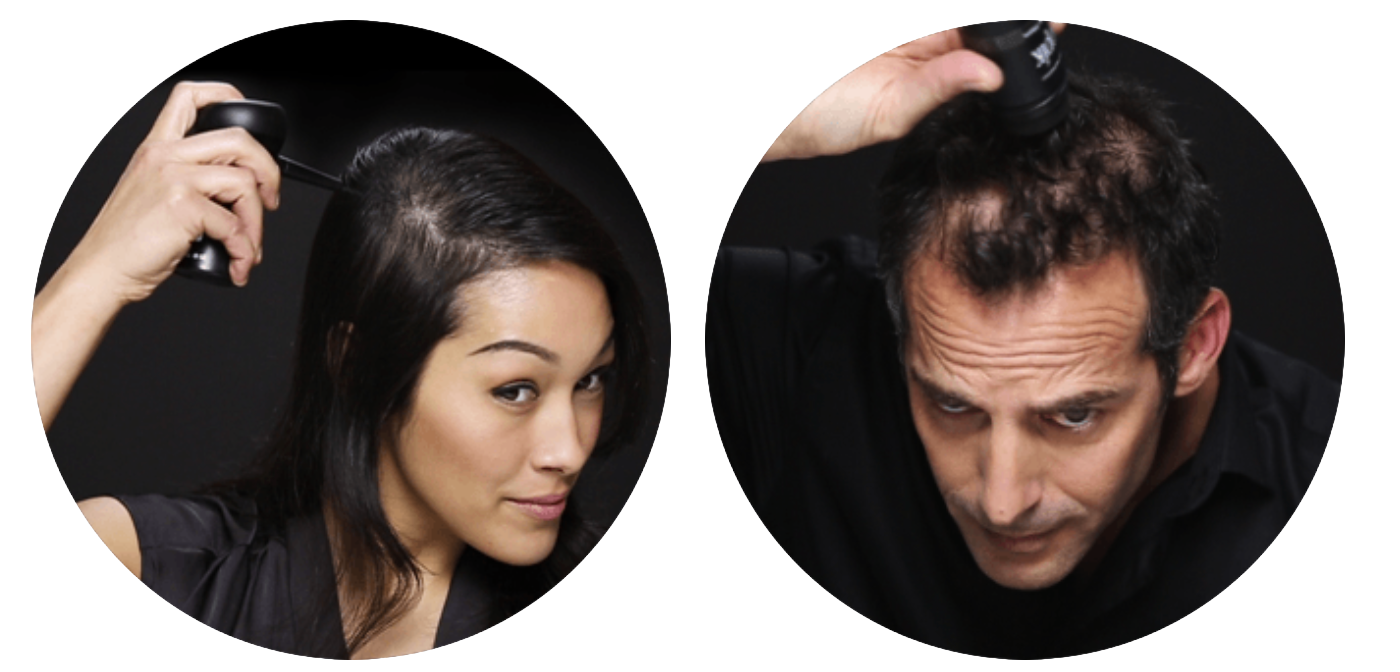 Schüttele oder sprühe die Toppik Haarfasern auf den zu verdichtenden Bereich.
